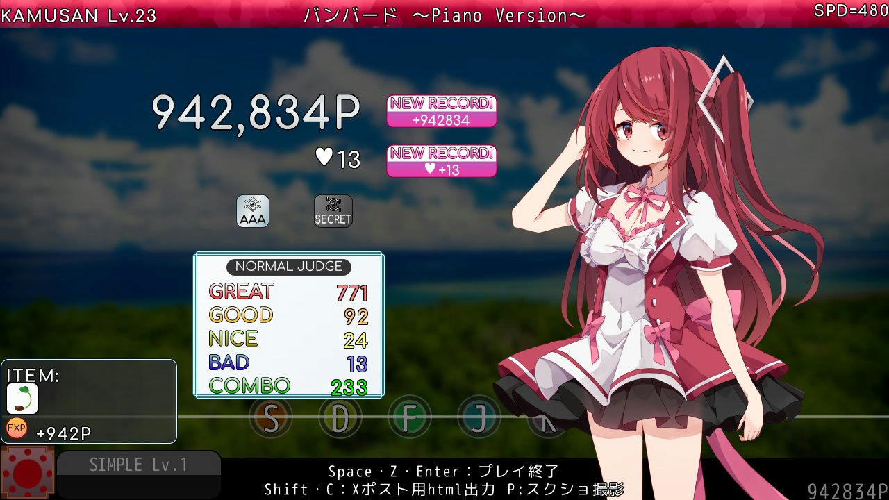 ハイスコアやフルコンボをめざして、がんばろう!