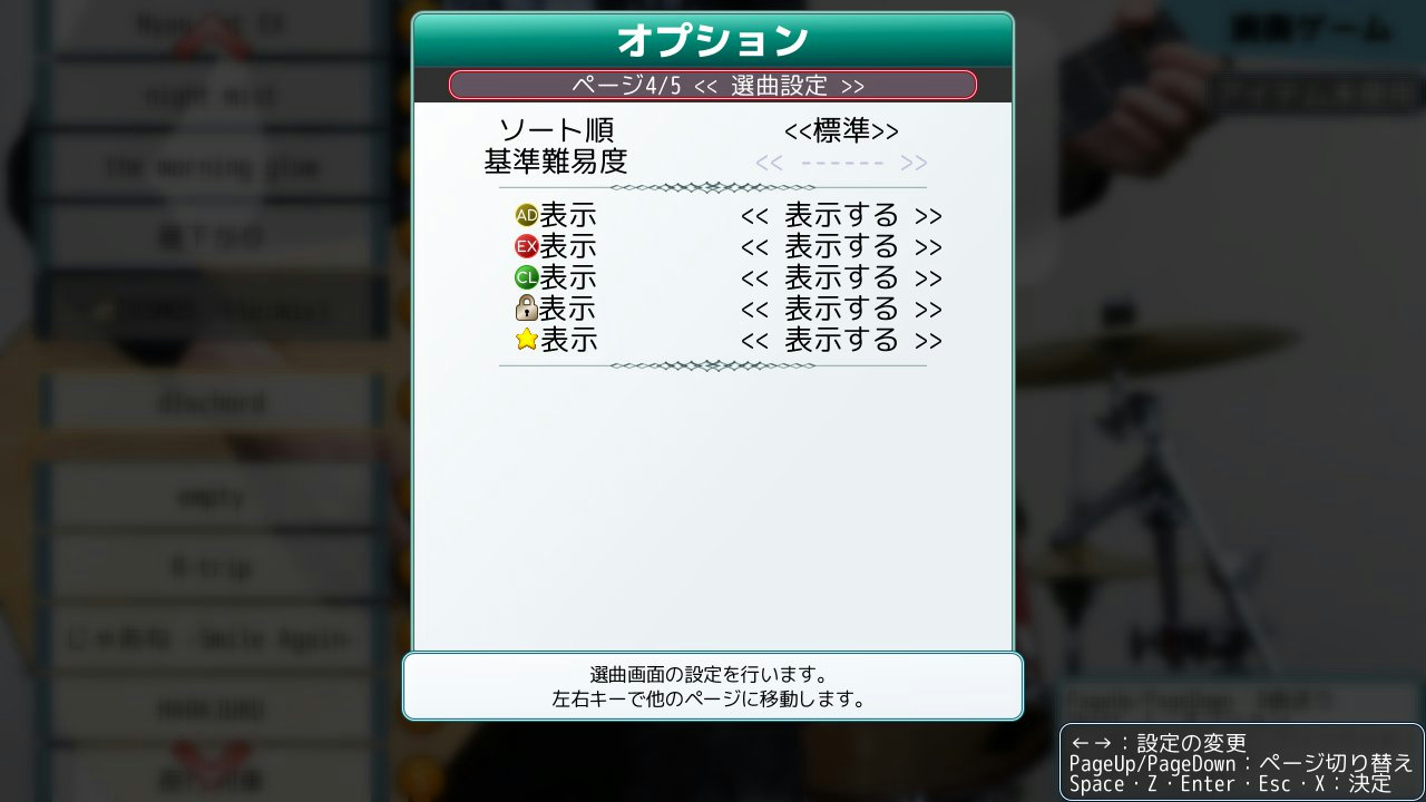 ユーザー作成譜面を表示するかを選択できます。ユーザー作成譜面はData/ExDataフォルダ内に保存されます。