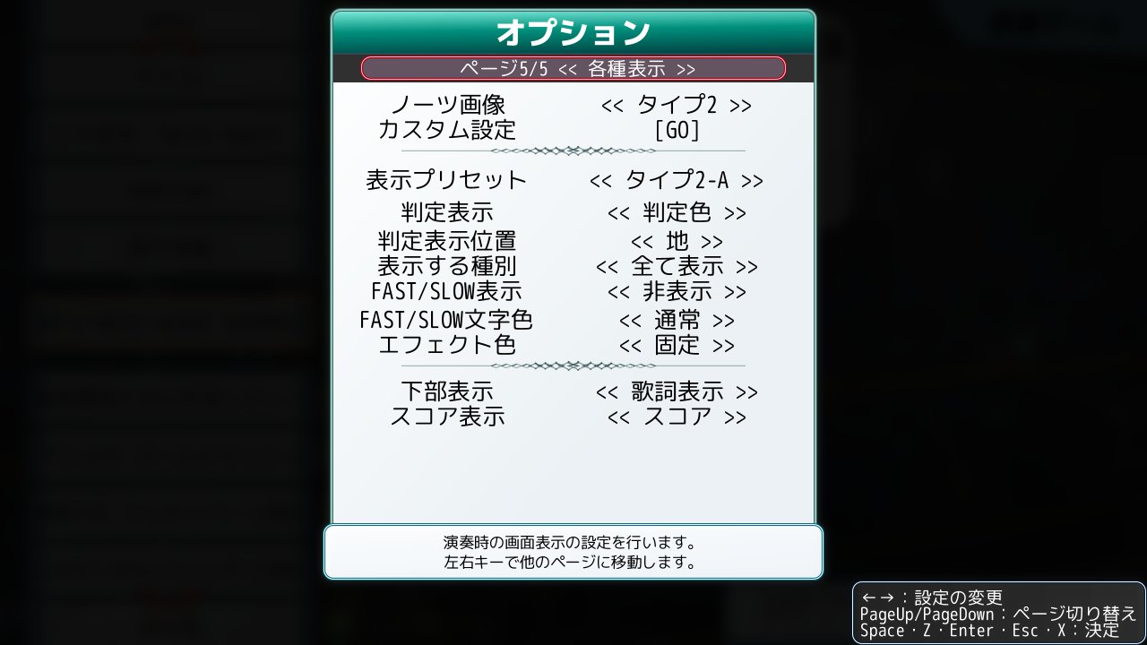 リザルト画面と画面下部に、FAST/SLOWの数を表示するか選択できます。タイミングが早いとFAST、遅いとSLOWが増えます。