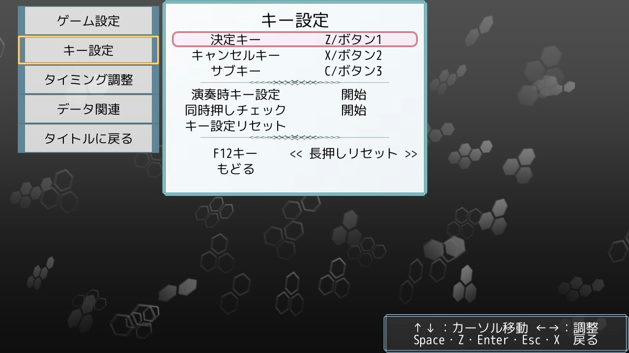 演奏時に使用するキーを設定しますデフォルト設定はS/D/F/J/K/Lです